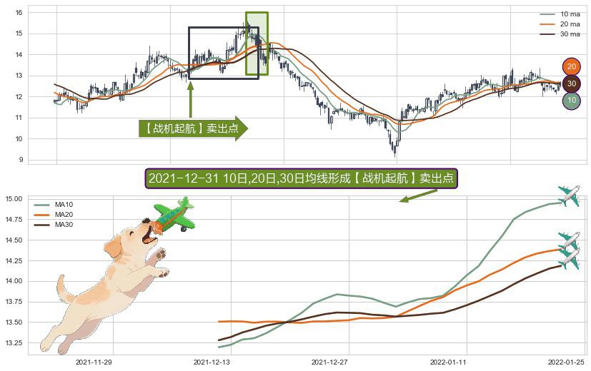 ⚀ 2021-12-10日-2022-01-21日显现 10日-20日-30日均线 【战机起航】卖出点 看空信号,后市看跌,卖出