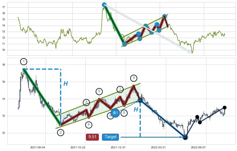 ➣ 最小中继整理跌幅→𝐇: 6.52 (𝐇旗杆的长度:旗杆起点→顶点)