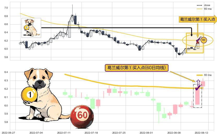 ⚀ 2022-08-11-日显现 葛兰威尔均线 60日均线 第买①入点 走势反转见底信号,后市看涨,买进信号