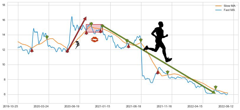 2020-12-09至2022-06-20 慢线与快线呈空头排列, 慢线与快线接触少,无缠绕