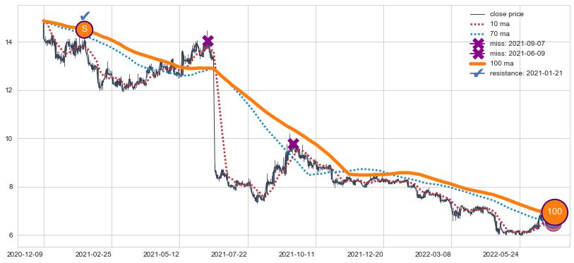 ⚄ 价格在均线遇到阻力后已再次向下回落了【极长】距离, 第⑦卖出点 阻力效果得到【明确确认】