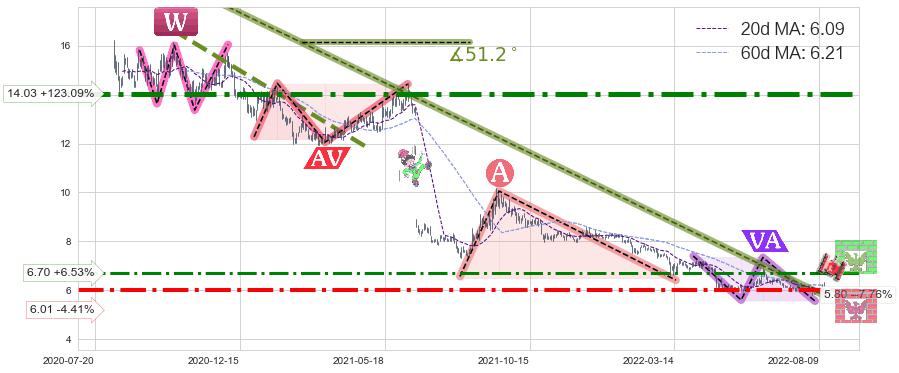 ♘ 阻力价格位14.03,可信任强度96.65%,距离最后交易2022-08-12形成的收盘价格6.29相差 +123.09%
