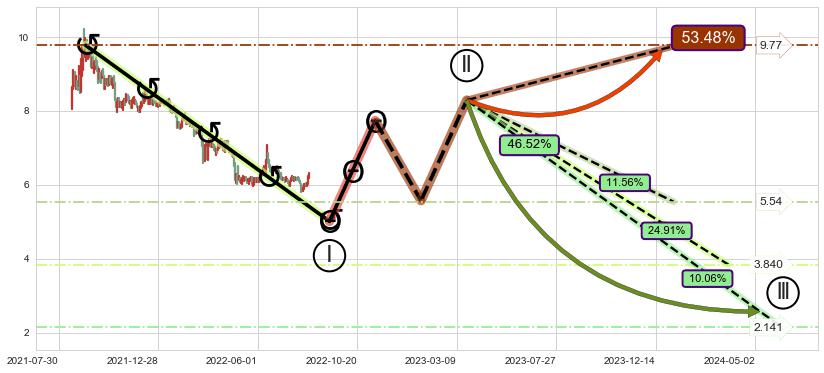 ➢ 循环浪继续向下【最低】位置(2024-06-10, 2.141),匹配聚类样本比例21.61%, 可能性概率10.06%