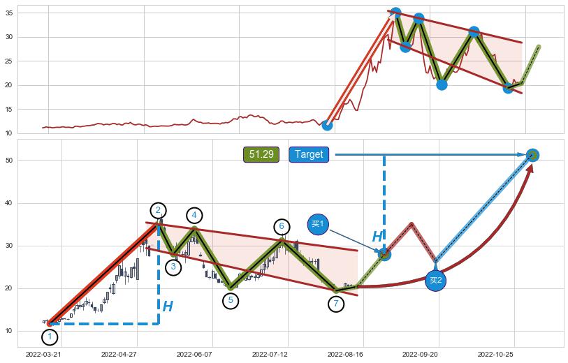 ➢ AI预测: 假定反转启动后, 第❷目标位置(2022-12-13, 27.67)