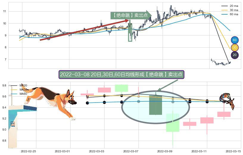 形态多维评估: ⚀ 2022-03-08日显现 20日-30日-60日均线 【绝命跳】卖出点 看空信号,后市看跌,卖出