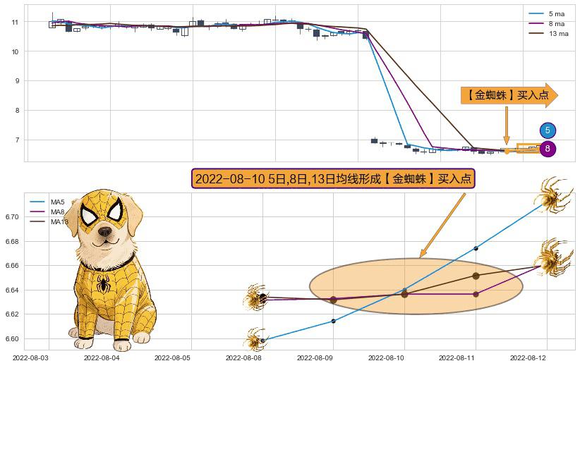 形态多维评估: ⚀ 2022-08-10日显现 5日-8日-13日均线 【金蜘蛛】买入点 看多信号,后市看涨,买入