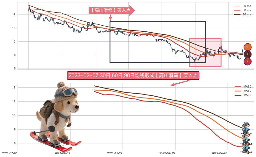 ⚀ 2021-10-21日-2022-05-24日显现 30日-60日-90日均线 【高山滑雪】买入点 看多信号,后市看涨,买入