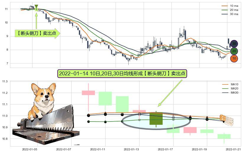 ⚀ 2022-01-14日显现 10日-20日-30日均线 【断头铡刀】卖出点 看空信号,后市看跌,卖出
