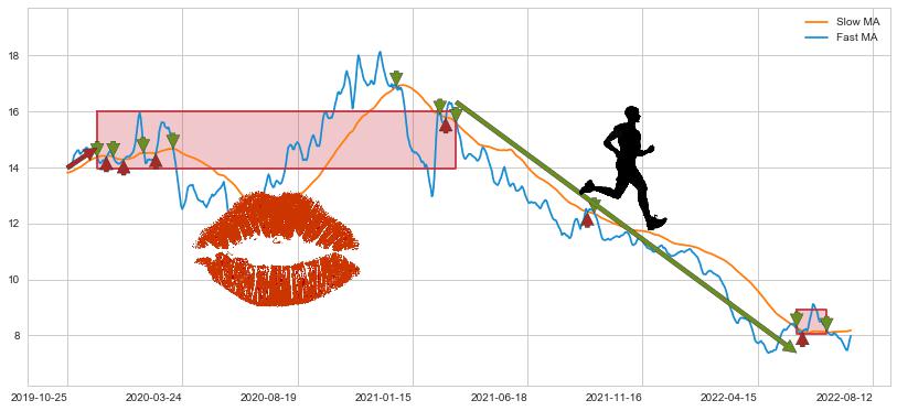 2021-03-17至2022-06-08 慢线与快线呈空头排列, 慢线与快线接触少,无缠绕