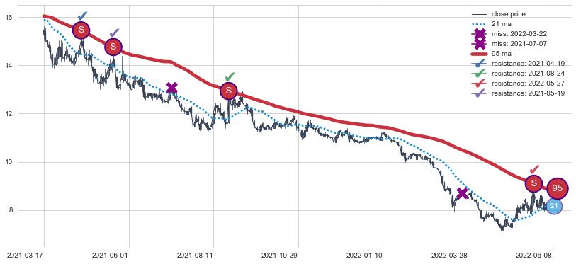 ⚂ 2022-06-23-日均线向上突破,2022-08-12-日重新下穿均线破位,均线阻力再次生效