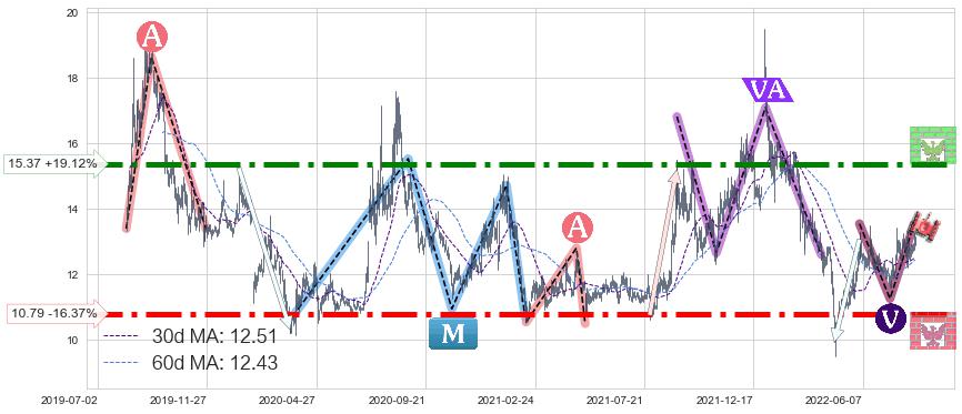♘ 阻力价格位15.37,可信任强度93.18%,距离最后交易2022-08-12形成的收盘价格12.90相差 +19.12%