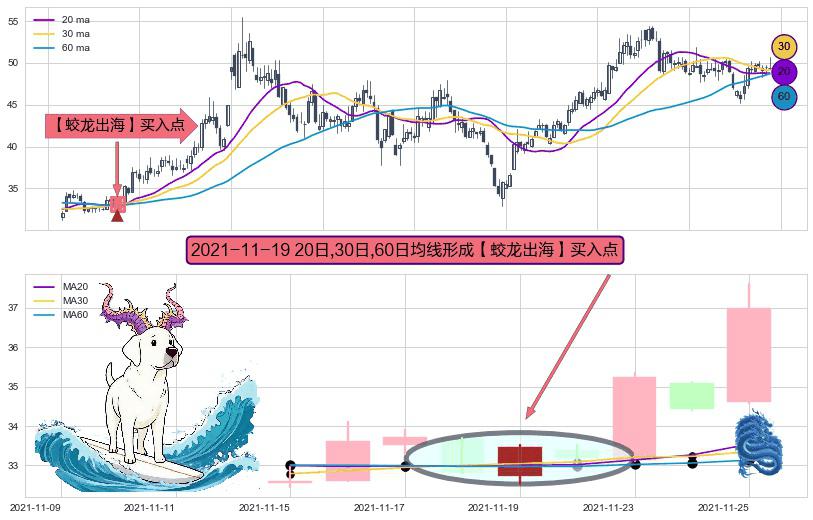 ⚀ 2021-11-19日显现 20日-30日-60日均线 【蛟龙出海】买入点 看多信号,后市看涨,买入