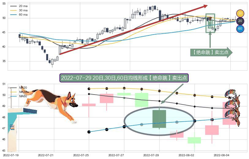 ⚀ 2022-07-29日显现 20日-30日-60日均线 【绝命跳】卖出点 看空信号,后市看跌,卖出