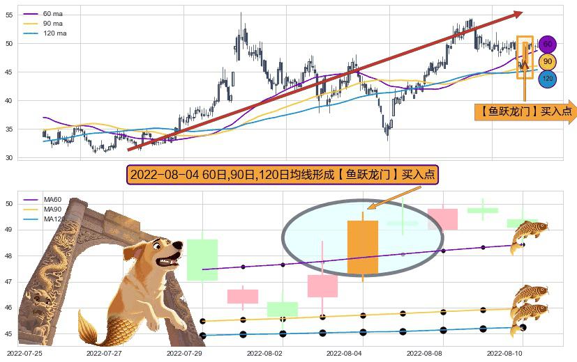 ⚀ 2022-08-04日显现 60日-90日-120日均线 【鱼跃龙门】买入点 看多信号,后市看涨,买入