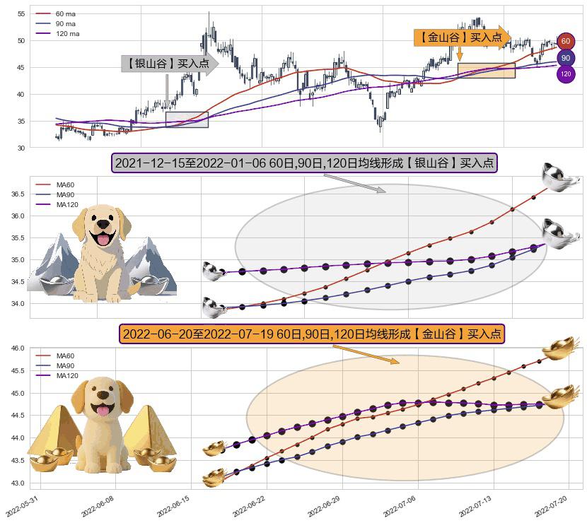 ⚀ 2022-06-21-日至2022-07-19-日显现 60日-90日-120日均线 【金山谷】买入点 其再次确认了买入信号,可靠性更强,买入