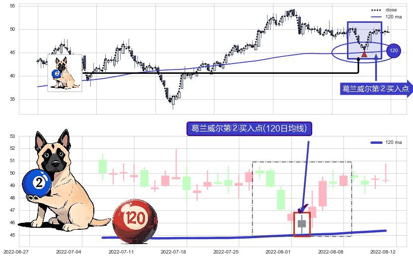 ⚀ 2022-08-02-日显现 葛兰威尔均线 120日均线 第②买入点 上升趋势的中继信号,后市看涨,买进信号