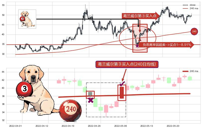 ⚀ 2022-05-05-日显现 葛兰威尔均线 240日均线 第③买入点 上升趋势的中继信号,后市看涨,买进信号