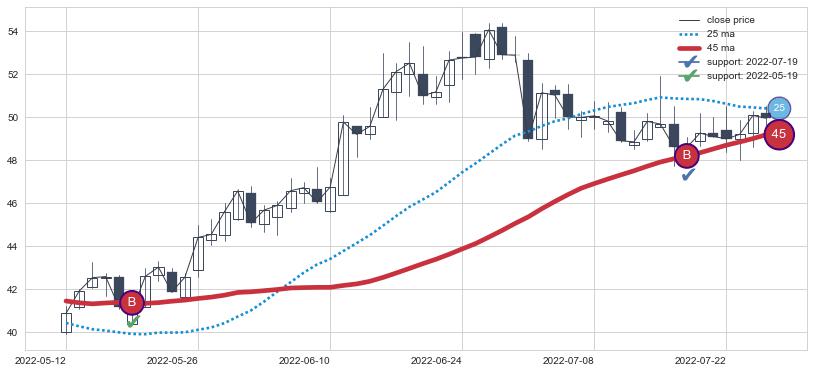 ⚂ 2022-04-22-日均线向下破位,2022-05-05-日重新上穿突破均线,均线支撑再次生效