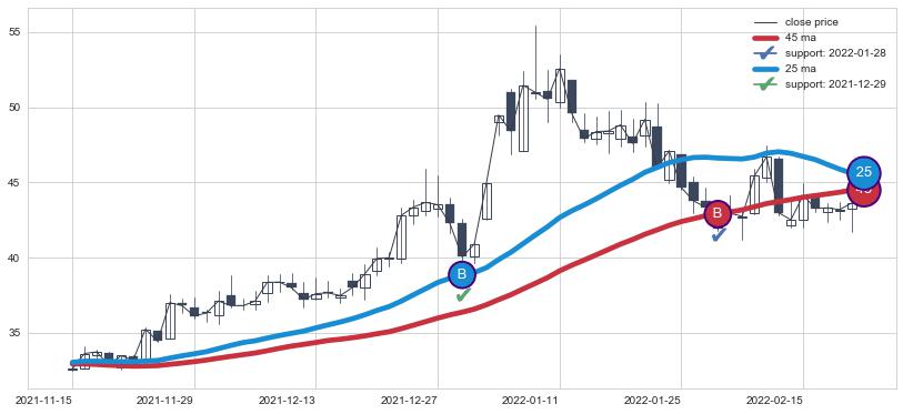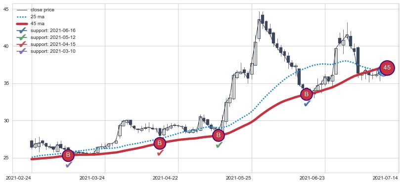 ⚄ 价格在均线获取支撑后再次向上反弹了【较短】距离, 第②买入点 支撑效果【仍需验证】