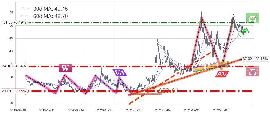 ♘ 阻力价格位51.03,可信任强度57.78%,距离最后交易2022-08-12形成的收盘价格49.45相差 +3.19%