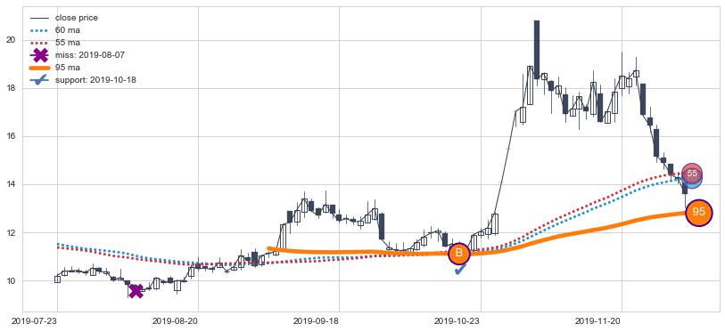 上涨趋势2019-07-23-2019-12-03,均线95确认关键支撑1处