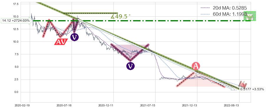 ♘ 阻力价格位14.12,可信任强度78.94%,距离最后交易2022-06-16形成的收盘价格0.5000相差 +2724.03%