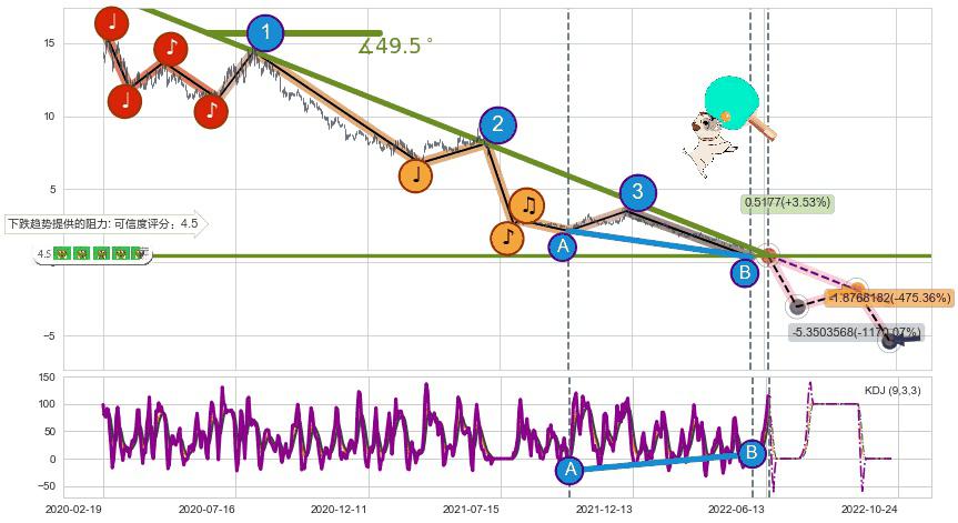 ♘ 在最后的下跌阶段2020-02-24至2022-06-15,存在 持续未破位的阻力位 ,阻力价格0.5177,可信任强度88.43%,其距离最后价格0.5000相差 +3.53%