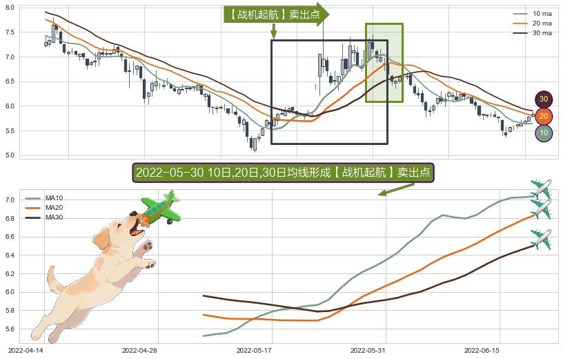 形态多维评估: ⚀ 2022-05-09日-2022-06-20日显现 10日-20日-30日均线 【战机起航】卖出点 看空信号,后市看跌,卖出