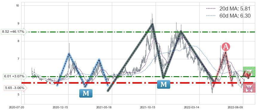 ♞ 20日均线:5.81,60日均线:6.30→ 快线<慢线