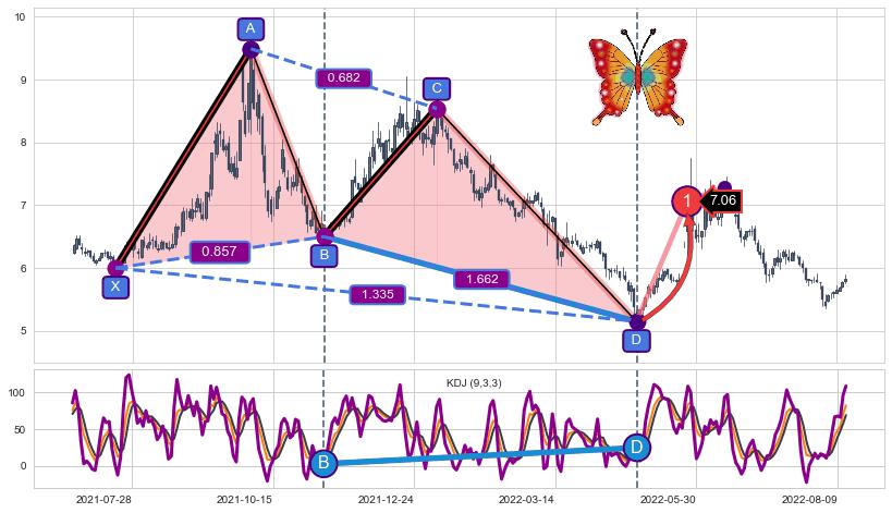 ➣ 已完成【蝴蝶】形态起点X: 2021-07-20, 终点D: 2022-04-26, 共186交易日