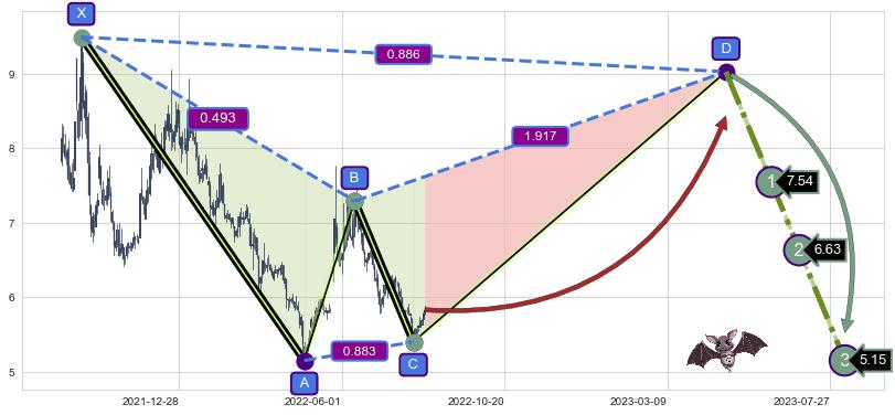 ➣ 未完成【蝙蝠】形态起点X: 2021-09-28, 已到达C点: 2022-08-03, 预测最终D点: 2023-04-28, 共397交易日