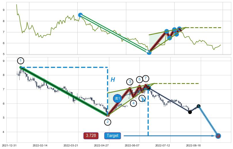 ➣ AI预测: 假定反转启动后, 第❶目标位置(2023-06-07, 7.54)