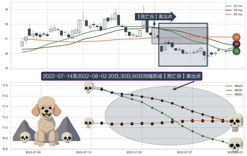 ⚀ 2022-07-15-日至2022-08-02-日显现 20日-30日-60日均线 【死亡谷】卖出点 看空信号,后市看跌,卖出