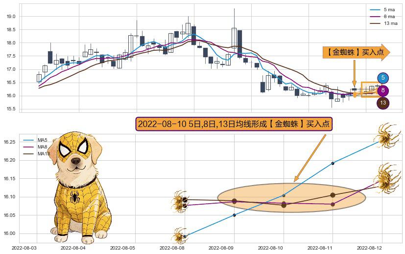 ⚀ 2022-08-10日显现 5日-8日-13日均线 【金蜘蛛】买入点 看多信号,后市看涨,买入