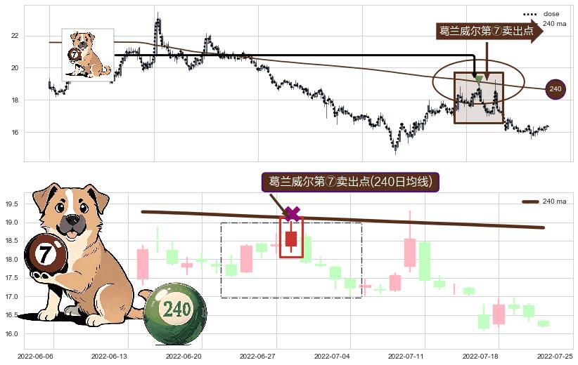 ⚀ 2022-06-28-日显现 葛兰威尔均线 240日均线 第⑦卖出点 下降趋势的中继信号,后市看跌,卖出信号