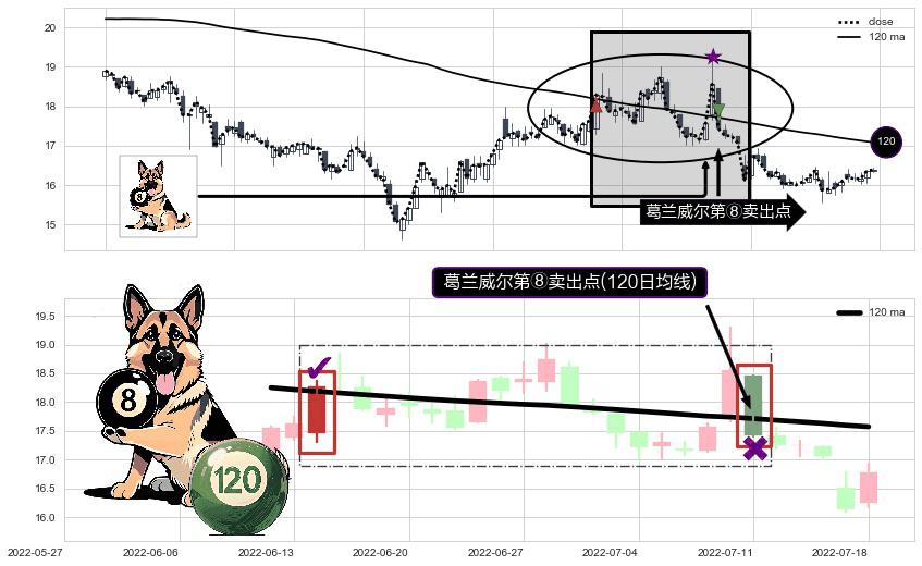 ⚀ 2022-07-11-日显现 葛兰威尔均线 120日均线 第⑧卖出点 下降趋势的中继信号,后市看跌,卖出信号