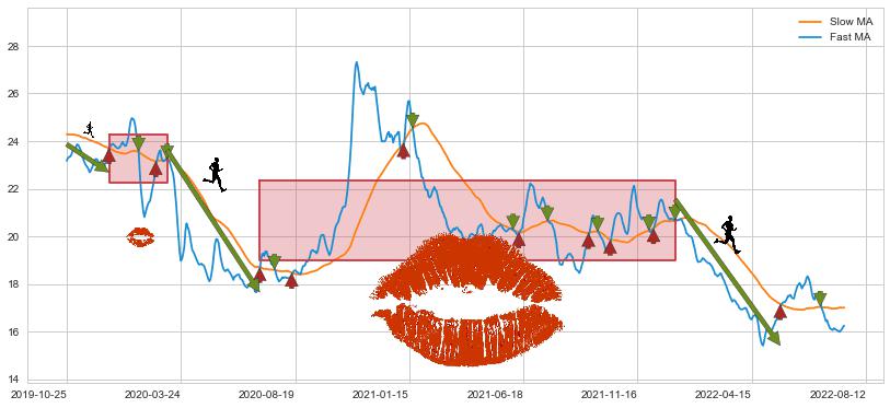 2021-12-31至2022-05-25 慢线与快线呈空头排列, 慢线与快线接触少,无缠绕