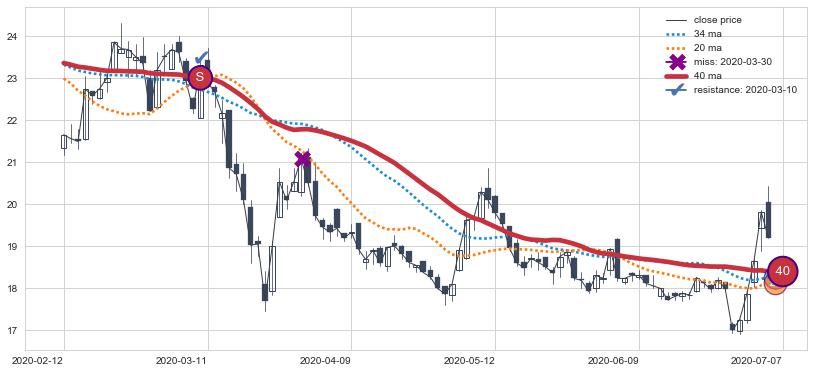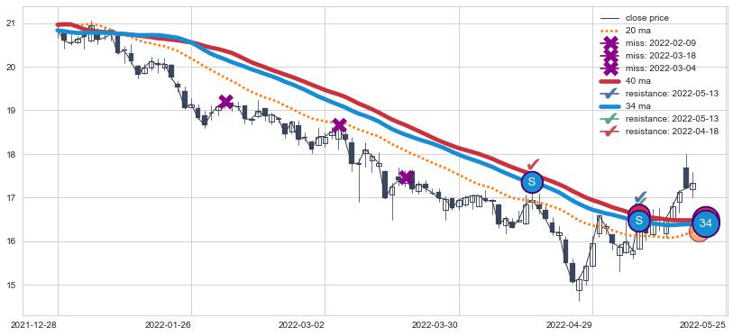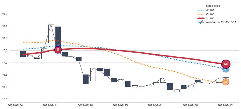 ⚂ 2022-06-14-日均线向上突破,2022-07-11-日重新下穿均线破位,均线阻力再次生效