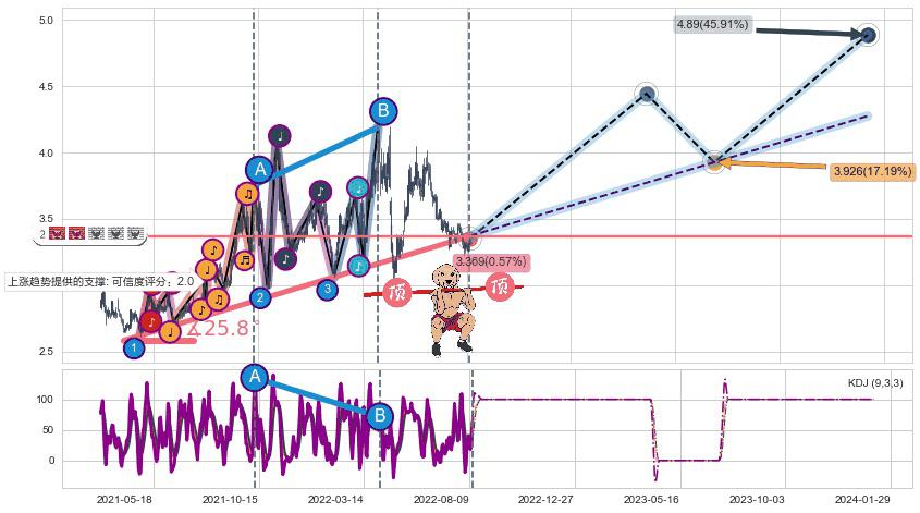 ♞ 延续前期上涨趋势提供的关键价格位有1个:3.369,将对后续走势提供一定支撑