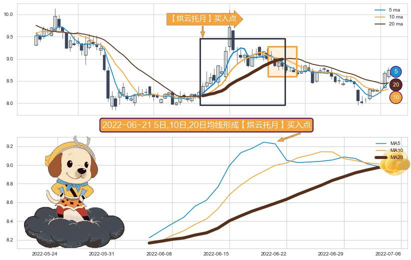 形态多维评估: ⚀ 2022-06-06日-2022-07-05日显现 5日-10日-20日均线 【烘云托月】买入点 看多信号,后市看涨,买入