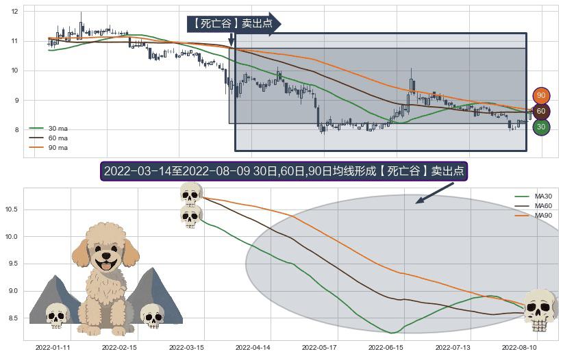 形态多维评估: ⚀ 2022-03-15-日至2022-08-09-日显现 30日-60日-90日均线 【死亡谷】卖出点 看空信号,后市看跌,卖出