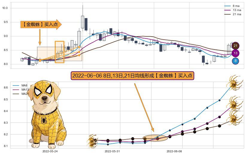 形态多维评估: ⚀ 2022-06-06日显现 8日-13日-21日均线 【金蜘蛛】买入点 看多信号,后市看涨,买入