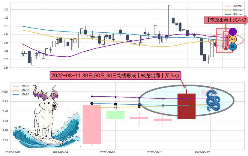 形态多维评估: ⚀ 2022-08-11日显现 30日-60日-90日均线 【蛟龙出海】买入点 看多信号,后市看涨,买入