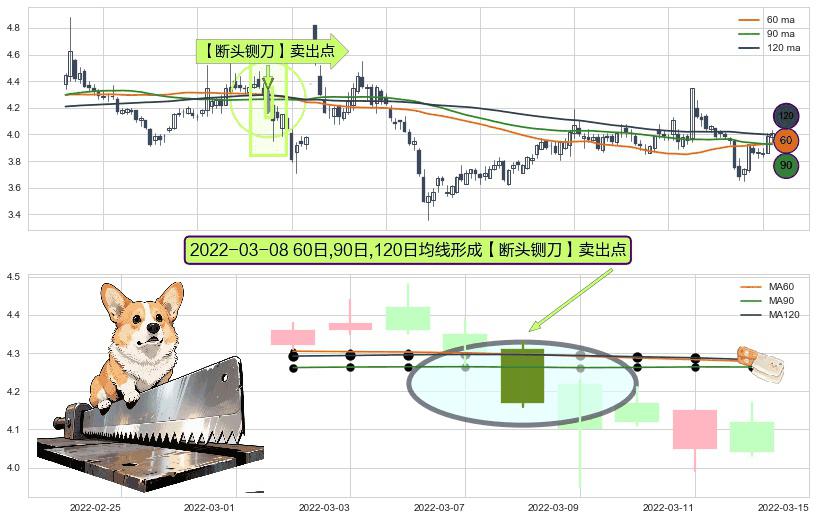 形态多维评估: ⚀ 2022-03-08日显现 60日-90日-120日均线 【断头铡刀】卖出点 看空信号,后市看跌,卖出