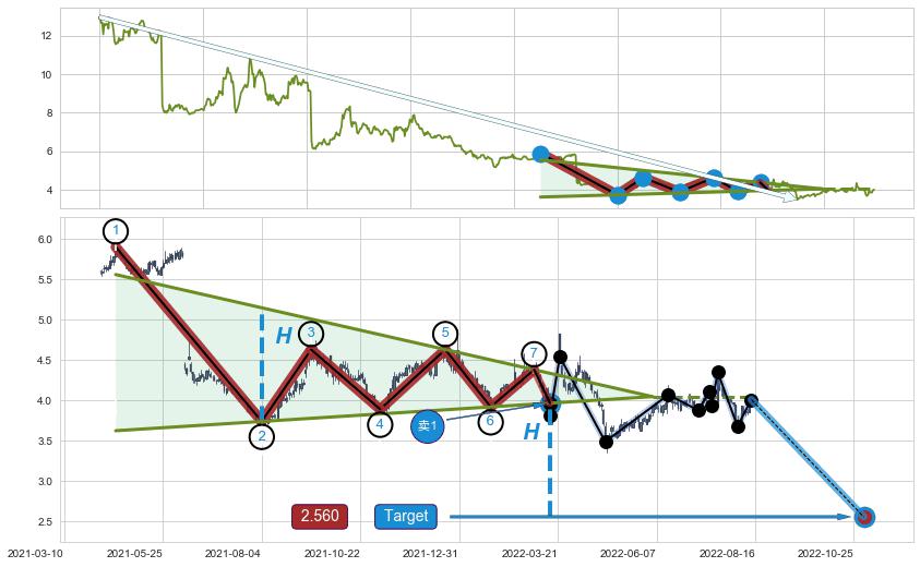 ➣ AI预测: 假定反转启动后, 第❶目标位置(2022-12-28, 4.47)