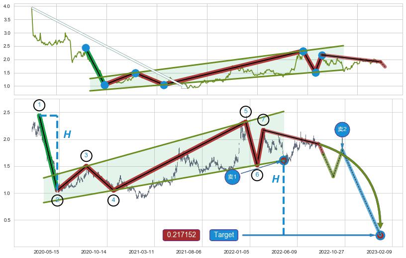 ➣ 最小中继整理跌幅→𝐇: 1.3900 (𝐇旗杆的长度:旗杆起点→顶点)