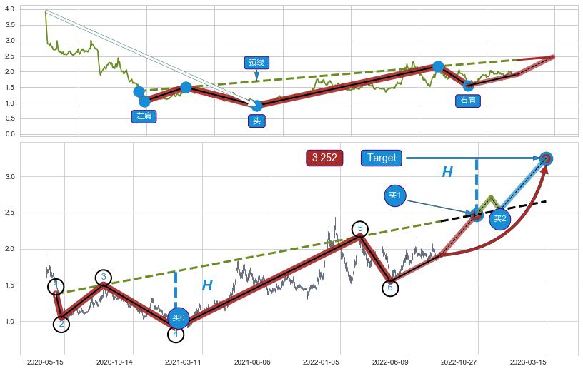 ➣ 最小反转涨幅→𝐇: 0.7786 (头部与颈线垂直距离)