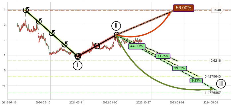 ➣ 循环浪继续向下【平均值】位置(2023-12-04, -0.4279643),匹配聚类样本比例52.33%, 可能性概率23.03%