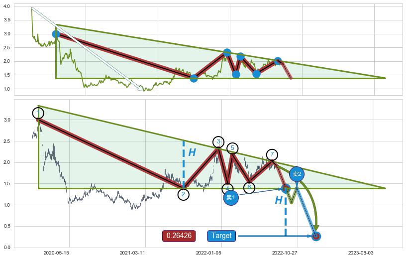 ➣ 【未确认突破,预测即将形成突破】下降三角形整理起点:2020-01-07, 预测突破点:2022-09-14,形态共652交易日