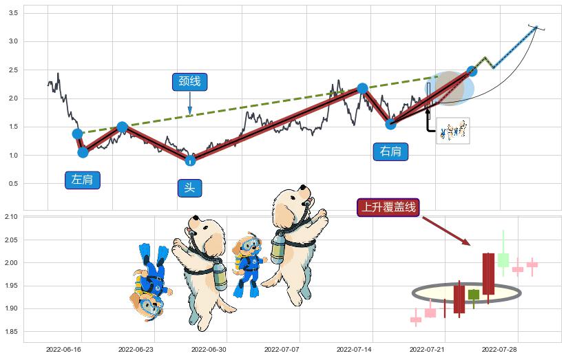 | 8 🅚:上涨两颗星 | 上涨三颗星 ➕ 📐:头肩底猜想突破点临近,临近关键阻力位,预期拉升突破上涨 ☞ 看多信号 ⇥ 【🅚线】交织【图形】⇥ 综合量化分数: 57 | > |